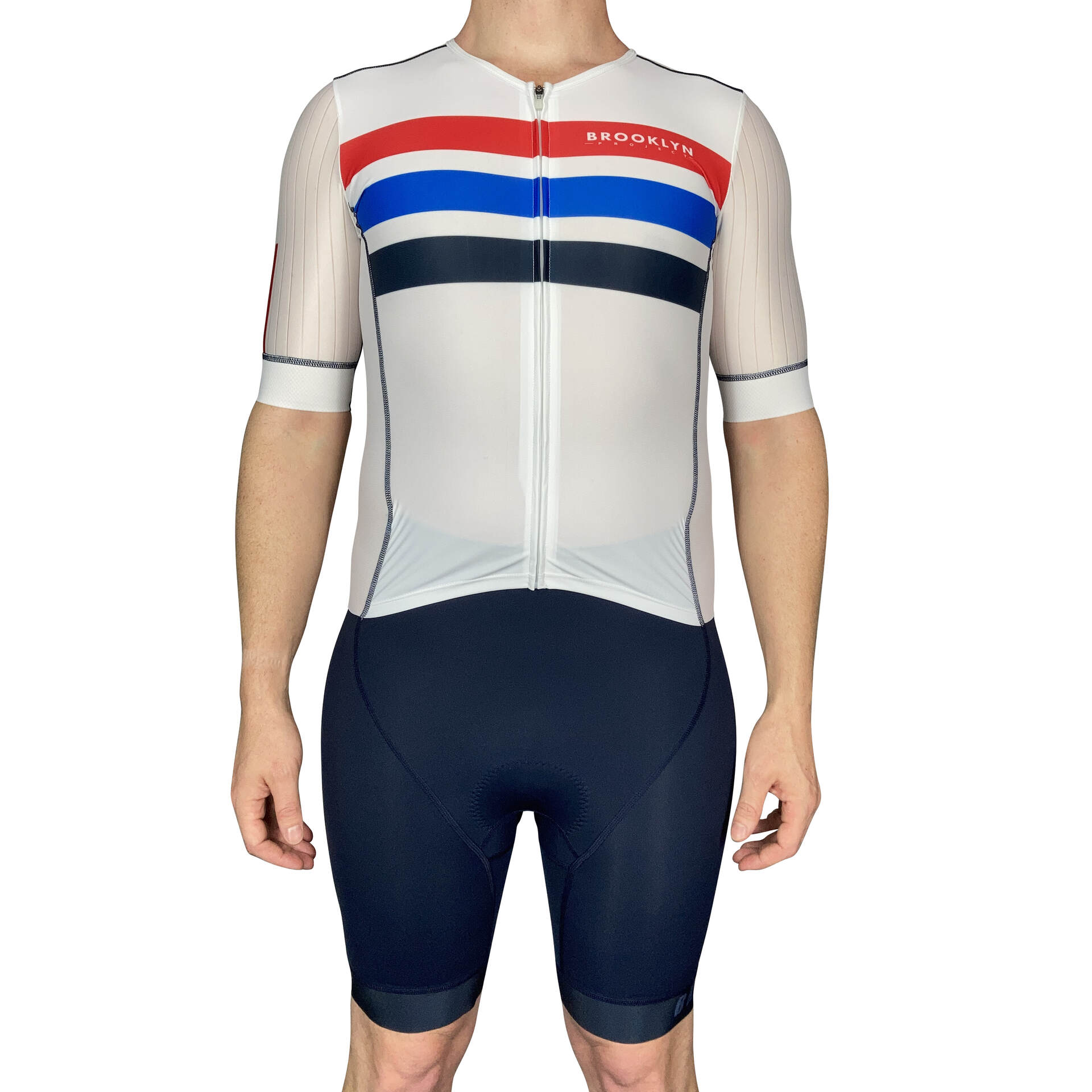 Men's Aero Triathlon Suit - Open Front, Endurance Speed Suit - White-Navy